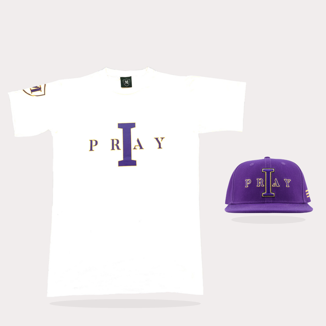 I Pray Purple/Gold Hat/Shirt Combo